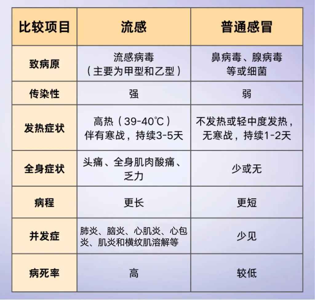 需注意与普通感冒区分 —— 流感症状更重、进展更快,单纯感冒药无法缓解病毒感染引发的全身不适。